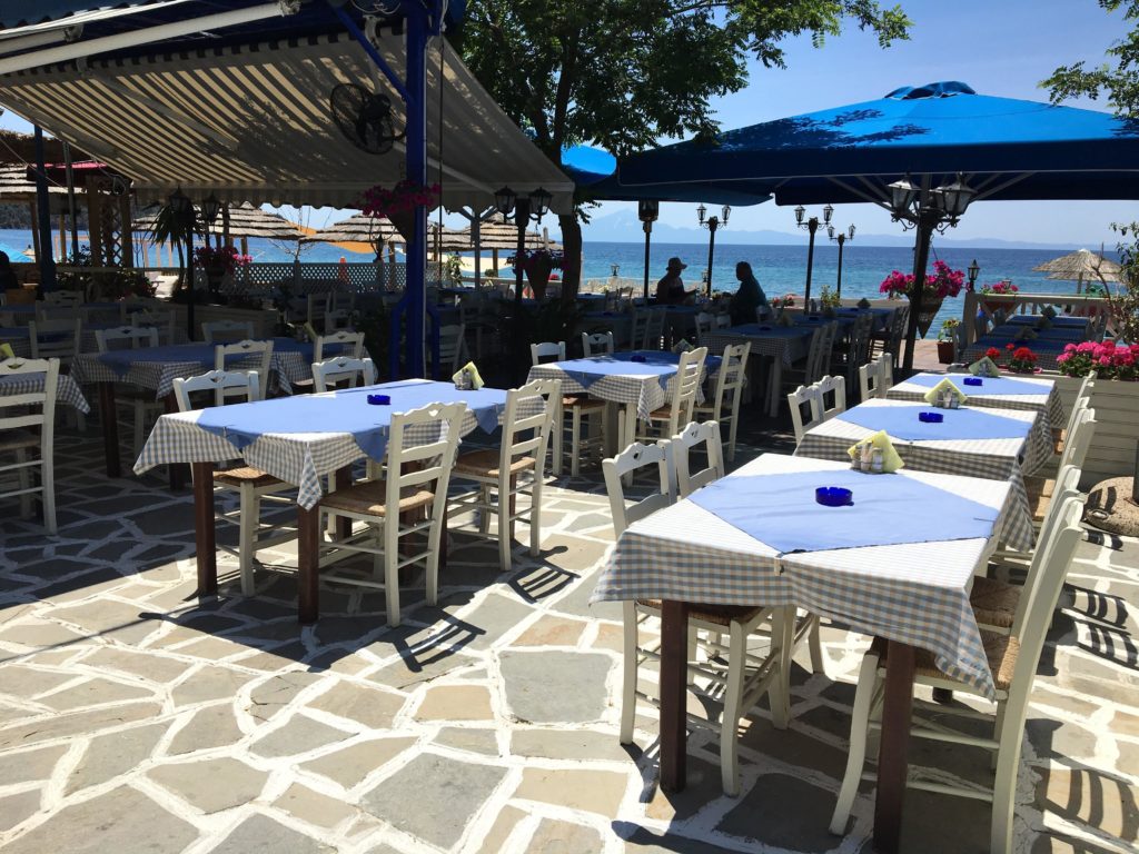 Possibly one of the best spots on the Island to marvel at the spectacular sunsets as the sun gently drops behind the peninsula of Mount Athos.